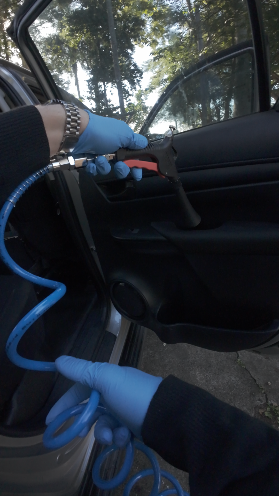 - Wipe down of all door panels, dashboard, instrument cluster, centre console, steering wheel, cup holders, foot pedals, and seats.